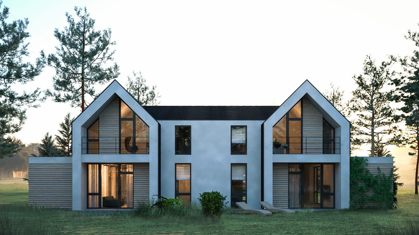 Дуплекс позволяет разместить два полноценных дома на участке меньшей площади, сохранив при этом комфорт и приватность.